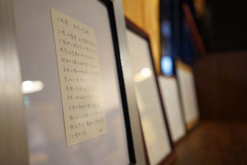 ココヘリ本社の会議室には、会員さまやご家族からいただいた感謝のお手紙が並んでいます。