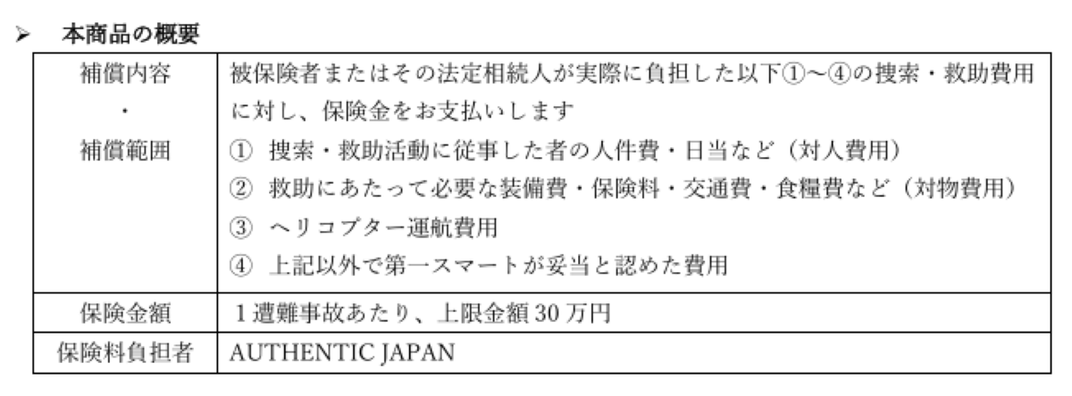 今般、AUTHENTIC JAPAN の山岳捜索サービス「ココヘリ」に第一スマートのココヘリ捜索・救助費用ほけん「ONE(ワン)」を組み合わせることで、登山におけるより安全・安心な環境を届けていきます。