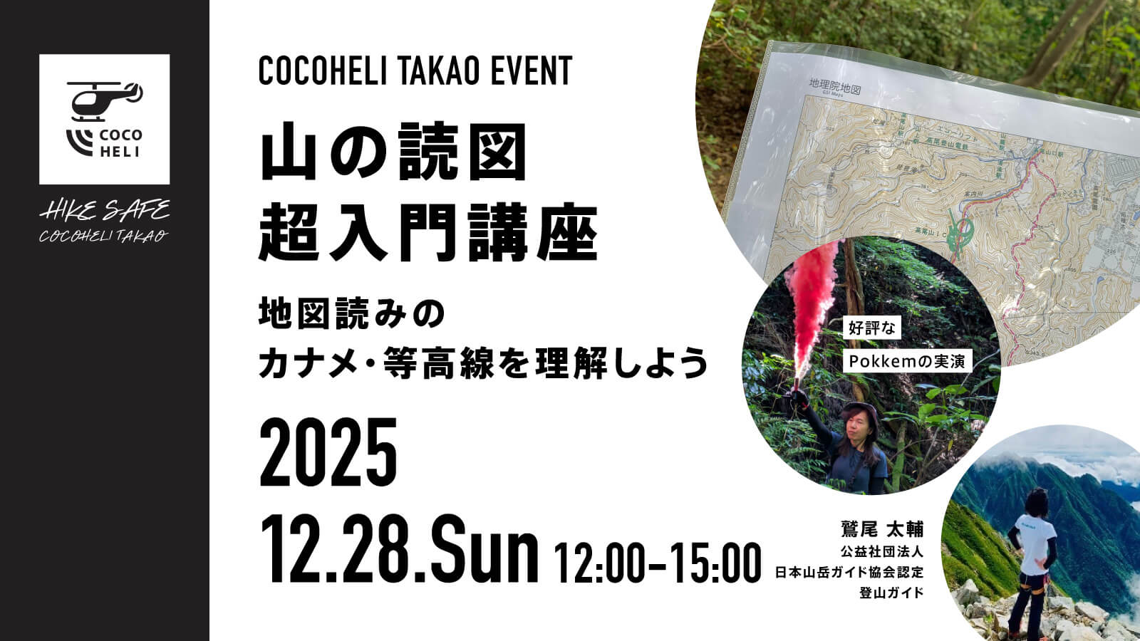 もっと深く地図読みができたら…?山登りが一気に楽しくなるだけでなく、ルートの先読みや道迷い遭難防止など様々なメリットがあります。今回は様々な地図読み技術の中でも、基本かつ要でもある等高線の見方を学びます。座学だけでなく実習で歩くことにより、地図から山の形を読み取るスキルを身に付けましょう。(山岳用小型発煙筒Pokkemの実演も行います)