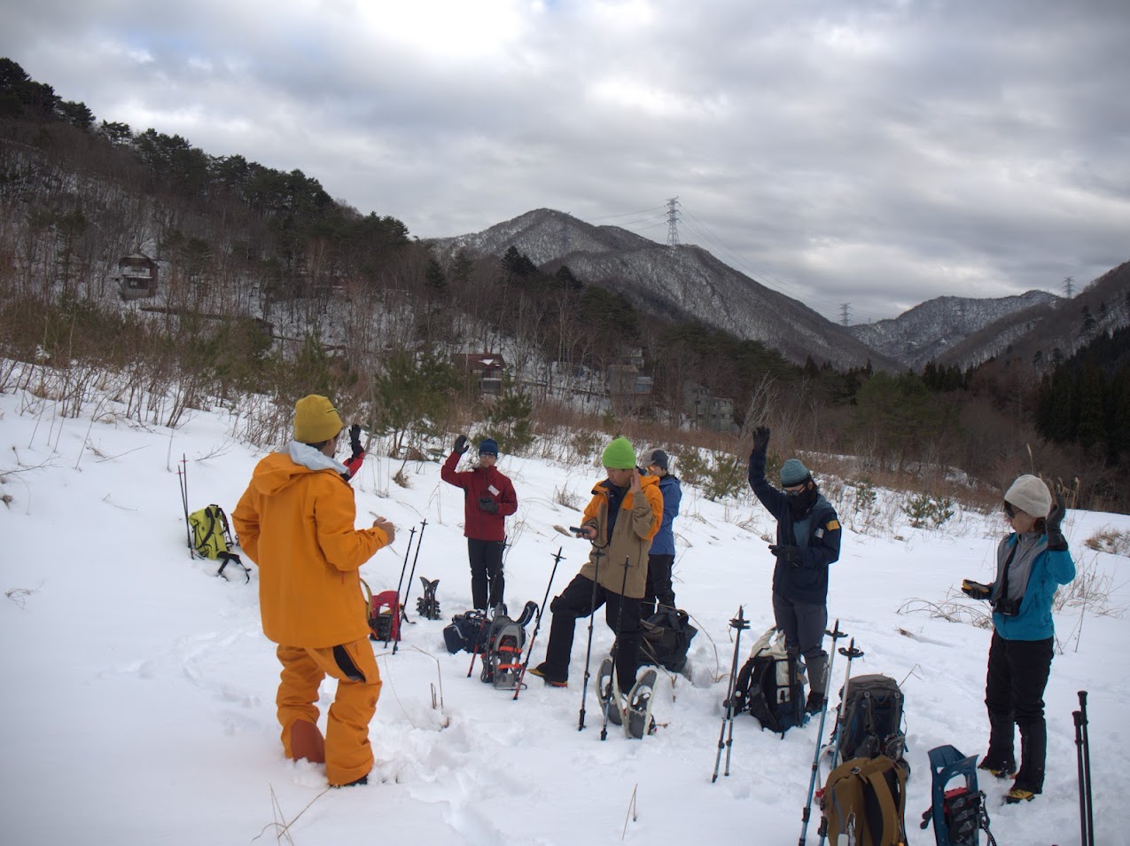スノーシューで雪上を歩くところから実技はスタート。初めての参加者も経験者も、同じフィールドで感覚を共有しました。